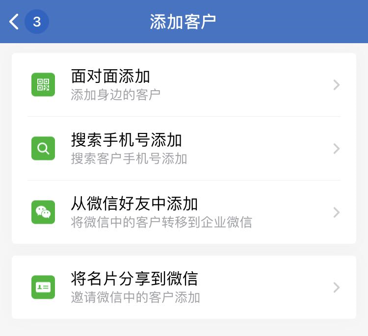 将名片分享到微信:和客户有微信好友关系、或者和客户在同一个微信群;直接将名片转发,客户主动点击后添加;