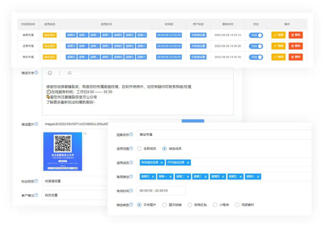 PS:欢迎语支持文字、图片、小程序、音频及视频等,此功能需第三方工具;