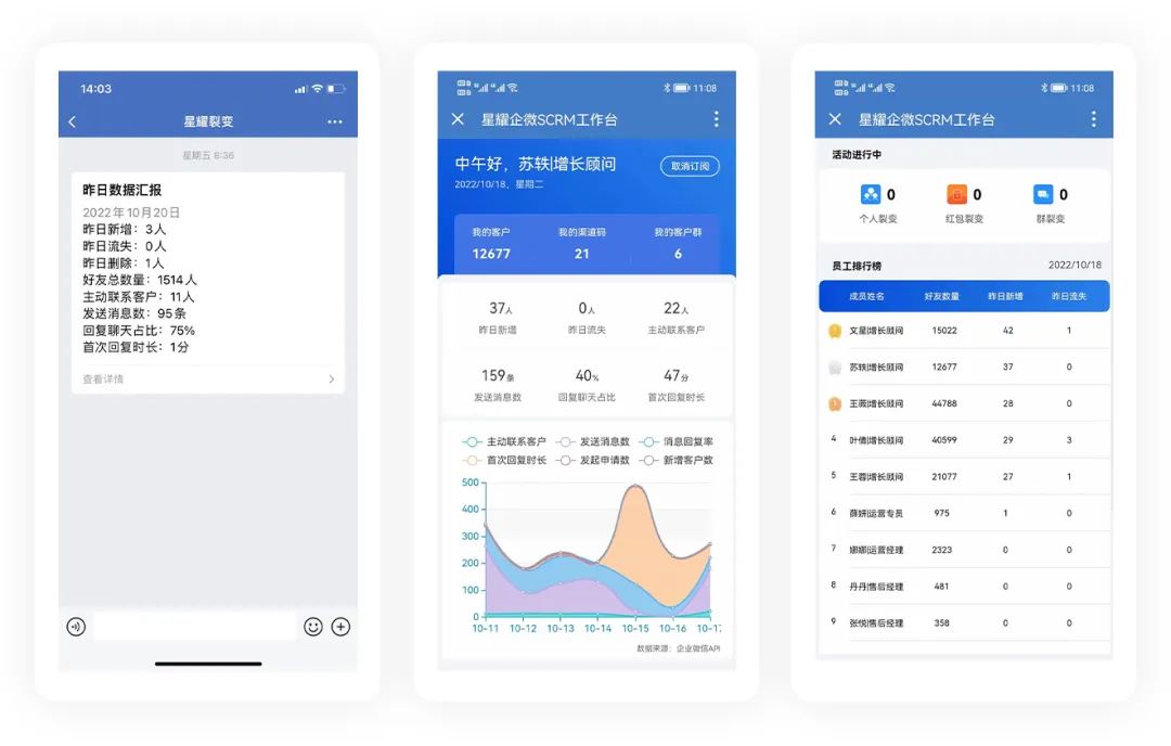 5.4、企业微信可实时了解每日群内退群情况、活跃度、对应的数据统计等,会及时通知管理员;