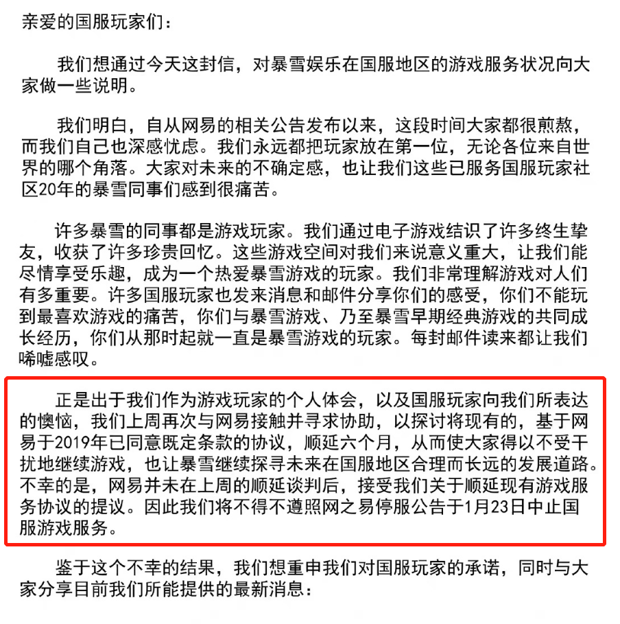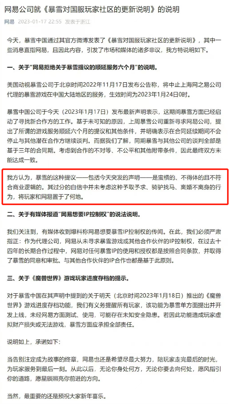 网易当然不干了,已经当了一次冤种,难不成还想再当半年冤种,于是也就有了暴雪那篇茶里茶气的小作文。