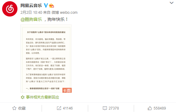网易的阴阳怪气大家早已领教,还记得之前网易云发长文,怒怼酷狗音乐像素级抄袭,不忘祝酷狗狗年快乐。