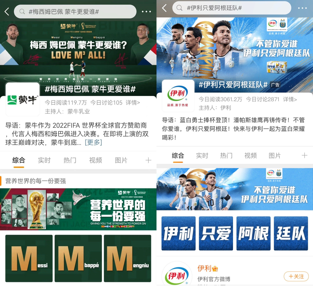 品牌们早都印证了一点,阴阳怪气是营销流量密码。当世界杯营销两大奶企都在争曝光量,蒙牛拷问“梅西姆巴佩蒙牛更爱谁”,伊利居然回应“只爱阿根廷”。
