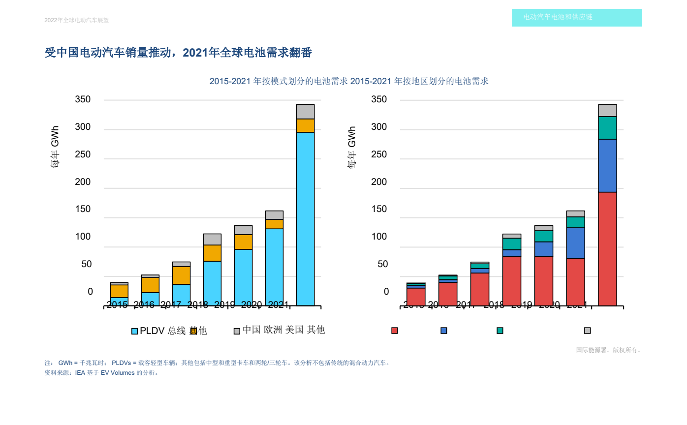 电动汽车销量继续破纪录,但矿产供应紧张迫在眉睫世界上很少有清洁能源领域像电动汽车市场那样充满活力。 2021 年,电动汽车 (EV) 的销量比上一年翻了一番,达到 660 万辆的新纪录。早在 2012 年,全球仅售出 12 万辆电动汽车。到 2021 年,每周的销量会超过这个数量。 2021 年全球汽车销量的近 10% 是电动汽车,是 2019 年市场份额的四倍。这使全球道路上的电动汽车总数达到约1650万辆,是2018年的三倍。2022年全球电动汽车销量保持强劲增长,一季度销量为200万辆,较2021年同期增长75%。