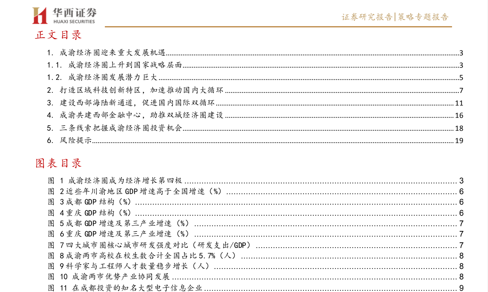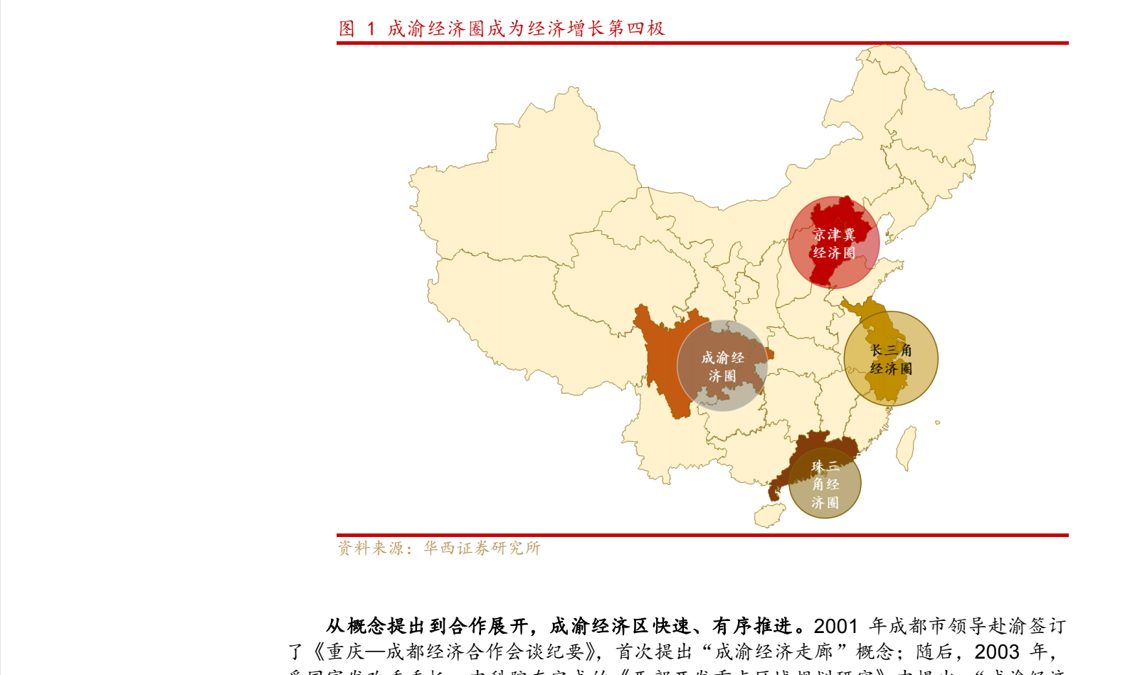当前成渝经济圈以信息技术为代表的新兴产业已经初具规模,叠加重庆汽车产业加速升级,有望推进优化和稳定国内产业链供应链目标。成渝城市圈作为四大经济圈中唯一一个身居内陆的城市圈,也是未来拉动西部地区内需的重要抓手,其以白酒为代表的传统消费产业值得关注。