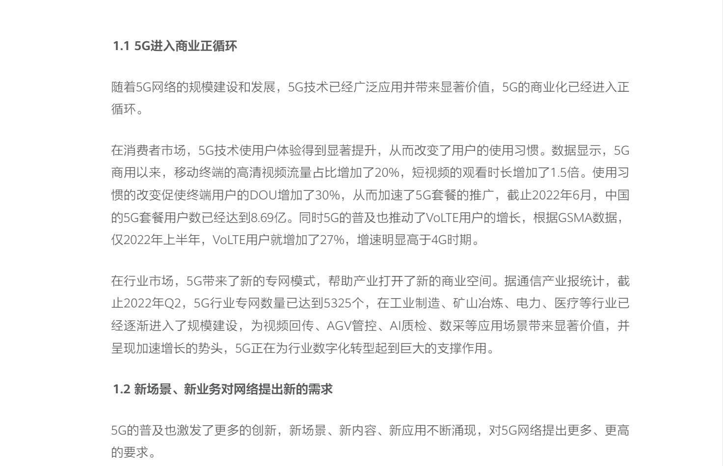随着5G的规模建设和发展,5G的商业化已经进入正循环,新业务、新场景不断涌现,给网络提出了许多新的需求,推动着技术、标准、应用和生态的持续演进,产业正在迈入5.5G时代。