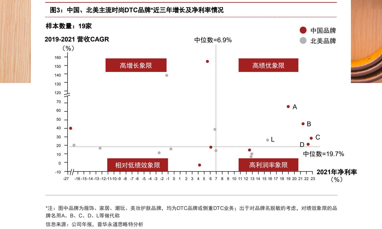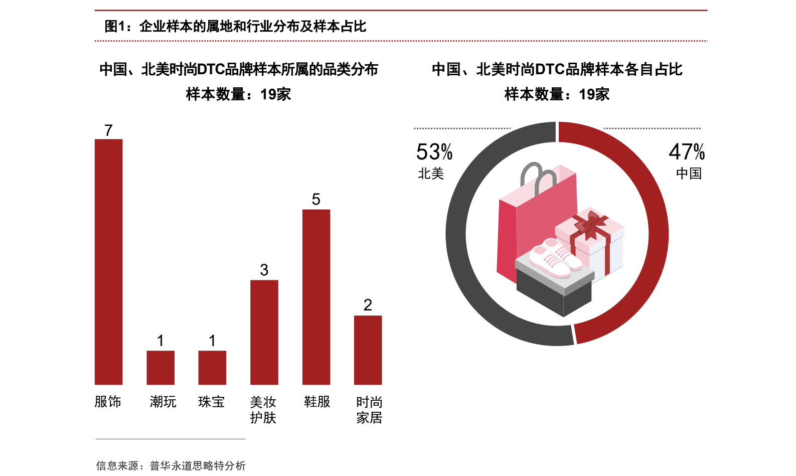 通过对比国内外典型的DTC品牌在近三年的发展状况(DTC品牌或侧重DTC业务,以下统称“DTC品牌”),甄别和探寻绩优企业的有益经验就显得颇具建设性。本白皮书筛选并聚焦中国和北美市场的19个时尚类DTC品牌,其中关联中国9个、北美10个DTC品牌,涉及6大细分品类,包括服饰、鞋服(兼做两大品类)、美妆护肤、珠宝、潮玩等品类。