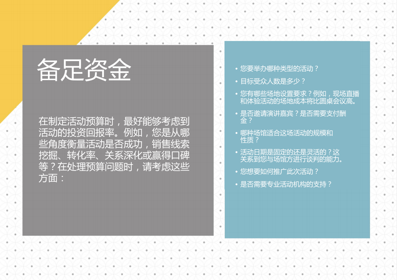 这份指南为您提供活动营销周期各个阶段的诀窍,从活动策划和预算到推广、现场管理和活动结束后的跟进。