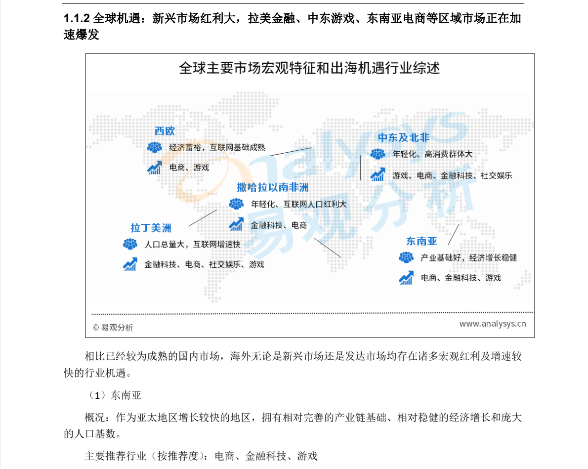 庞大的产业规模培育了大量全球领先的互联网企业,拥有丰富业务运营、产业协作和用户服务等经验。一方面,出海能够使中国互联网企业的业务经验进一步变现,另一方面,也意味着中国互联网在海外市场拥有经验方面的竞争优势。