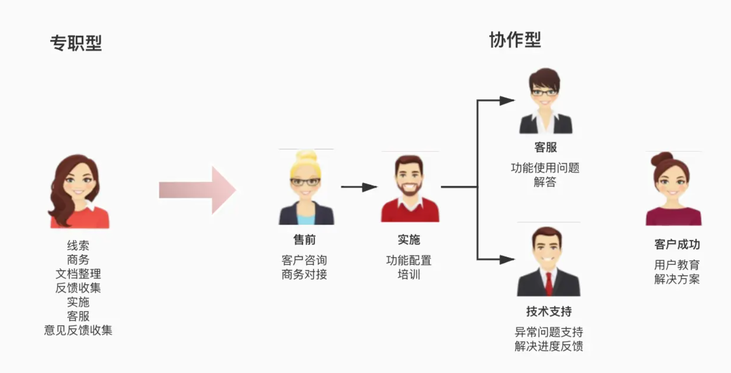 此外,在对接种子客户的过程中,我们也积累了一定的服务经验。后期企业微信SCRM产品进入大规模推广阶段,我们也是从服务种子用户经验中得出需要哪些部门协同,制定标准服务流程。
