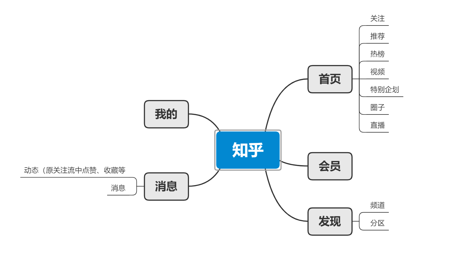 鉴于大部分用户习惯用APP,本文以APP为主要产品形态来分析。知乎APP的产品结构如下: