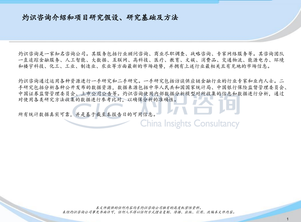 其咨询团队一直追踪金融服务、人工智能、大数据、互联网、高科技、医疗、教育、文娱、消费品、交通物流、能源电力、环境和楼宇科技、化工、工业、制造业、农业等方面最新的市场趋势,并拥有上述行业最相关且有见地的市场信息。灼识咨询通过运用各种资源进行一手研究和二手研究。一手研究包括访谈供应链金融行业的行业专家和业内人士。二手研究包括分析各种公开发布的数据资源,数据来源包括中华人民共和国国家统计局、中国银行保险监督管理委员会、中国证券监督管理委员会、上市公司公告等。灼识咨询使用内部数据分析模型对所收集的信息和数据进行分析,通过对使用各类研究方法收集的数据进行参考比对,以确保分析的准确性。